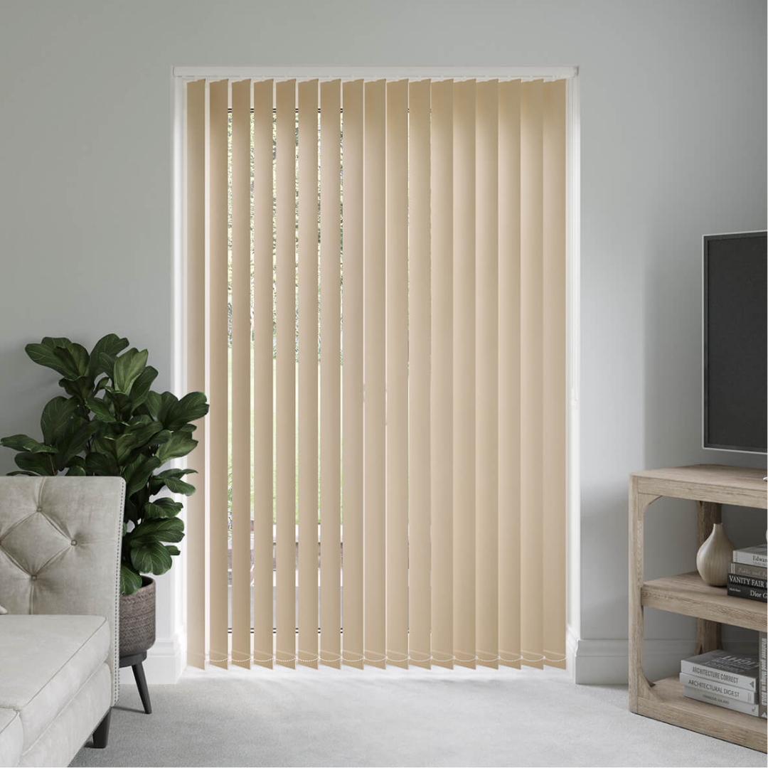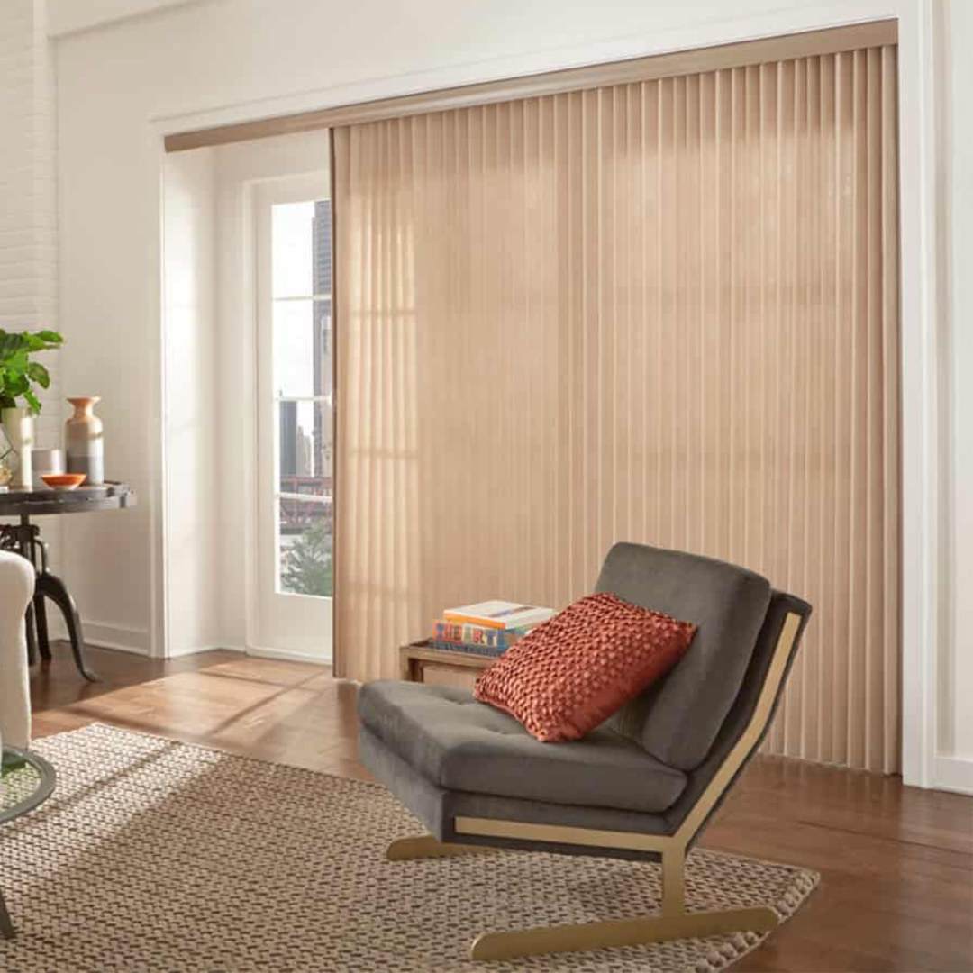 Upgrade your windows with motorized Alpha Vertical Blinds for privacy and style.